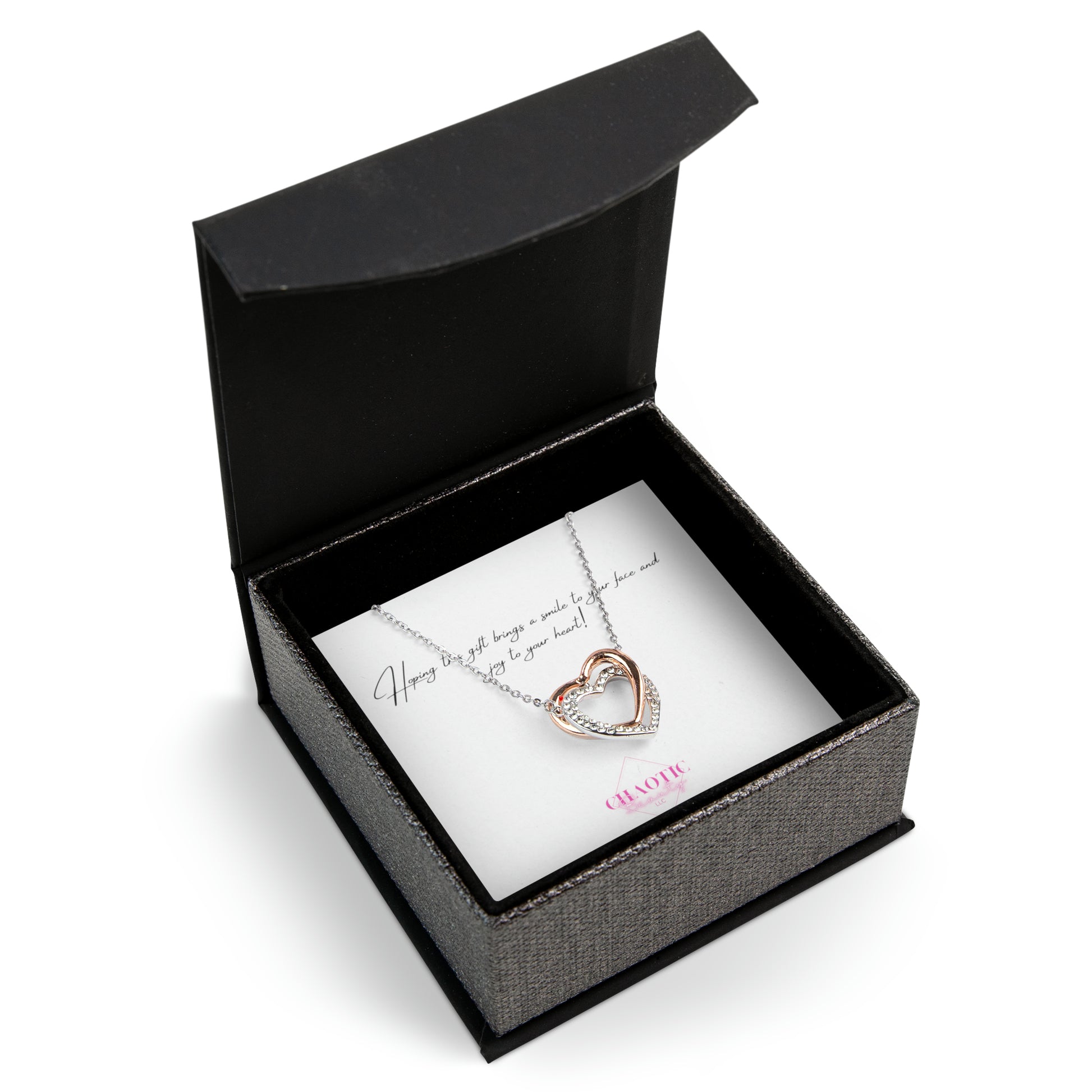 This 18K rose gold-plated brass pendant brings gorgeous, long-lasting looks that are highly versatile. Each heart necklace is tarnish-resistant with an enduring shine and comes with an elegant twin flames design, as well as an 18"-22" adjustable stainless steel chain with a lobster clasp attachment. Choose between 3 elegant box options for an unforgettable gifting experience: LED, Textured Magnetic, or Brown PU Leather boxes.